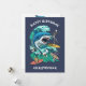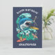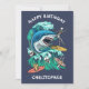 Carte d'anniversaire personnalisée pour les vagues de requin. Nourrir la frénésie tout en chevauchant les vagues. Attaque de requin ; esthétique rétro.