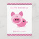 Jolie carte d'anniversaire de porc rose personnalisée.