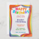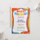 Une carte d'anniversaire vibrante avec des coutures en papier ondulé et colorées qui créent un cadre semblable à un arc-en-ciel. Parfait pour une fête joyeuse et festive.