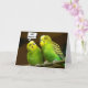 Une carte d'anniversaire drôle et colorée pour son frère avec l'image photo d'un couple de perruches vertes brillantes, également appelées perruches ondulées. Choisissez parmi une carte de style mat ou brillante.