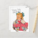 Très jolie carte du Lapin toujours pressé d'Alice . Belle qualité de l'impression en rose pastel.