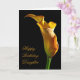 Un majestueux lis d'arum doré s'élève sur le côté. Une fleur parfaite pour transmettre vos souhaits d'anniversaire.
