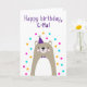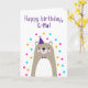 Carte d'anniversaire pour G-Ma. Si vous appelez votre grand-mère G-Ma au lieu de Grand-mère, cette carte d'anniversaire est parfaite pour elle. Votre g-ma va adorer le design mignon, moderne, coloré, de style scandinave de cette carte d'anniversaire qui comprend un ourson en peluche marron et gris avec un casquette de fête violet et un confetti rose, jaune et bleu avec le texte "Joyeux anniversaire, G-Ma !" Rendre cette carte personnalisable ! Cliquez sur "Edit Design", "Inside Bottom/Right : Text & Images", "Text" et "Add text" pour écrire votre propre message personnalisé à G-Ma intérieur !
