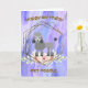 Carte d'anniversaire pour votre caniche. Le design est un caniche gris sur un arrière - plan mélangé lavande et violet, dans un cadre doré, posé sur des fleurs. Carte mignonne pour ce caniche sucré. Merci à Design Cuts, le Hungryjpeg et Creative Fabrica pour certains des éléments dans le design.
