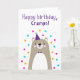 Carte Anniversaire pour Gramps. Si tu appelles ton grand-père Gramps au lieu de grand-père, cette carte d'anniversaire est parfaite pour lui. Vos copains adoreront le design de cette carte d'anniversaire mignon, moderne, coloré, de style scandinave qui comprend un ourson en peluche marron et gris avec un casquette de fête violet et des confettis rose, jaune et bleu avec le texte "Joyeux anniversaire, petits copeaux !" Rendre cette carte personnalisable ! Cliquez sur "Edit Design", "Inside Bottom/Right : Text & Images", "Text", et "Add text" pour écrire votre propre message personnalisé aux Gramps à l'intérieur !
