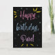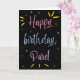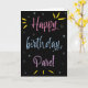 Vous appelez votre père Pare, pas Papa. (Pare signifie père en catalan et en vénitien.) Imaginez à quel point Pare sera ravi de recevoir une carte d'anniversaire adressée spécialement à lui ! Votre pare adorera également le design coloré de cette carte inspiré des feux d'artifice (jaune, rose, bleu et violet sur fond noir) qui dit "Joyeux anniversaire, Pare !"