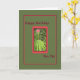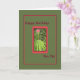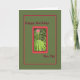 Carte verte moyenne avec une bordure rouge qui entoure plantes et fleurs. Carte parfaite à envoyer à votre Pen Pal.