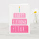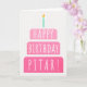 Carte d'anniversaire pour Pitar. Si vous appelez votre père Pitar au lieu de papa, cette carte d'anniversaire est parfaite pour lui. (Pitar signifie père en farsi.) Votre pitar va aussi adorer le dégradé de cette carte d'anniversaire avec un gâteau d'anniversaire qui dit "Joyeux Pitar d'anniversaire !" Rendre cette carte personnalisable ! Cliquez sur "Edit Design", "Inside Bottom/Right : Text & Images", "Text" et "Add text" pour écrire votre propre message personnalisé à Pitar intérieur !