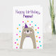Carte d'anniversaire pour Poppa. Si vous appelez votre grand-père Poppa au lieu de grand-père, cette carte d'anniversaire est parfaite pour lui. Votre papy va adorer le design mignon, moderne, coloré, de style scandinave de cette carte d'anniversaire qui comprend un ourson en peluche marron et gris avec un casquette de fête violet et des confettis rose, jaune et bleu avec le texte "Joyeux anniversaire, Poppa !" Rendre cette carte personnalisable ! Cliquez sur "Edit Design", "Inside Bottom/Right : Text & Images", "Text" et "Add text" pour écrire votre propre message personnalisé à Poppa intérieur!