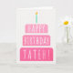 Carte d'anniversaire pour Tateh. Si vous appelez votre père Tateh au lieu de papa, cette carte d'anniversaire est parfaite pour lui. (Tateh signifie père en yiddish.) Votre tateh va aussi adorer le design rose pâle et foncé de cette carte d'anniversaire avec un gâteau d'anniversaire qui dit "Bonne Tateh anniversaire !" Rendre cette carte personnalisable ! Cliquez sur "Edit Design", "Inside Bottom/Right : Text & Images", "Text" et "Add text" pour écrire votre propre message personnalisé à Tateh intérieur !