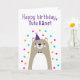 Carte d'anniversaire pour Tutu Kāne. Si vous appelez votre grand-père Tutu Kane au lieu de Grand-père, cette carte d'anniversaire est parfaite pour lui. (Tutu Kāne signifie grand-père en hawaïen.) Votre tutu kāne va adorer le design mignon, moderne, coloré, de style scandinave de cette carte d'anniversaire qui comprend un ourson en peluche brun et gris avec un casquette de fête violet et cravate et rose, jaune et bleu confetti avec le texte "Joyeux anniversaire, Tutu Kane!" Rendre cette carte personnalisable ! Cliquez sur "Edit Design", "Inside Bottom/Right : Text & Images", "Text" et "Add text" pour écrire votre propre message personnalisé à Tutu Kāne à l'intérieur !
