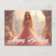 Carte d'anniversaire magique avec une princesse dans une robe rose, parfait pour les filles et les fans de contes de fées et l'élégance.