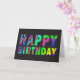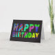 Carte d'anniversaire Rainbow Zebra. Appuyez sur le bouton "customiser" ci-dessus pour customiser et personnaliser l'élément en choisissant un style différent, en changeant la couleur et la taille ou en ajoutant votre propre texte et photos à l'avant et à l'arrière.