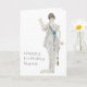 Illustration rétro d'une femme élégante et stylée portant une robe drapée avec des perles. Carte blanche minimale avec une police de style Art déco. Illustration vintage de George Barbier. Style des années 1930. Personnalisez facilement cette carte en modifiant le texte du modèle.
