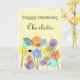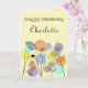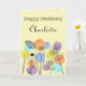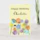 Carte d'anniversaire de style rétro, ligne dessinant des fleurs sur un arrière - plan pastel avec des cercles aux couleurs pastel rétro.