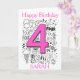 Carte d'anniversaire rose de quatre ans