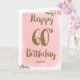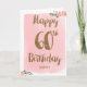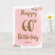 Carte personnalisée rose et or 60ème anniversaire, qui présente une aquarelle rose sur le devant contre la parties scintillant d'or "heureux 60ème anniversaire". Veuillez noter qu'il n'y a pas de parties scintillant réelle sur ce produit mais un effet de conception. Vous pourrez facilement personnaliser le devant avec son nom. L'intérieur lit un message d'anniversaire et le dos peut être personnalisé avec l'année. Cela ferait un bon souvenir pour son soixantième anniversaire.