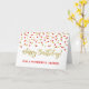 Carte d'anniversaire pour l'ami avec de l'or et le motif moderne rouge de confettis.