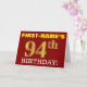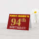 Ce design de carte de salutation d'anniversaire comporte un message comme "le quatre-vingt-quatorzième ANNIVERSAIRE du PRÉNOM ! ", avec "le quatre-vingt-quatorzième" ayant un faux/imitation or-comme l'aspect de couleur. Le nom du destinataire sur l'avant peut être customisé, et l'arrière - plan avant est coloré rouge. Il comporte également un message personnalisé de salutation d'anniversaire sur l'intérieur. Une carte de voeux d'anniversaire comme ceci a pu peut-être être donnée à quelqu'un dans la célébration de leur quatre-vingt-dix quatrièmes anniversaires. [~Z0000184]