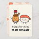 Célébrez votre personne préférée avec cette adorable carte d'anniversaire "Soy-Mate" ! Avec un rouleau de sushi souriant et une bouteille de sauce soja, ce design de style kawaii est parfait pour les couples, les meilleurs amis ou quiconque aime les jeux de mots sur la nourriture. Imprimé avec des couleurs vives et un message ludique : "Joyeux Anniversaire à mon Soy-Mate !" – cela va certainement les faire sourire.