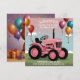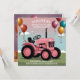 Cartes et invitations d'anniversaire tracteur rose mignon.