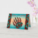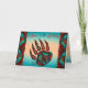 Personnalisez cette carte d'anniversaire unique "Tribal Bear Paw" ! Elle présente une empreinte de patte d'ours tribale amérindienne sur un fond de coucher de soleil turquoise et orange entouré de bordures du sud-ouest en turquoise, orange et noir ! "Joyeux 50e anniversaire" !