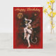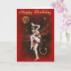 Cette carte est illustrée avec une dame de diable dansante vintage et la carte d'anniversaire textuelle joyeuse.