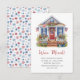 Voici une charmante carte d'annonce de déménagement, magnifiquement ornée d'une illustration aquarelle charmante d'une maison cosy, décorée de manière festive pour le 4 juillet. La scène est placée sur un fond blanc croquant, permettant aux couleurs vives rouge, blanc et bleu de briller. Personnalisez cette carte enchanteresse avec les détails de votre nouveau domicile pour partager votre nouvelle excitante de manière sincère et fantaisiste !