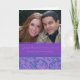 Carte d'annonce de fiançailles avec une conception de tourbillons de bleu sarcelle vibrant et élégant et de violet foncé, unique et élégante, personnalisable avec vos noms et votre propre photo, le moyen idéal pour partager votre bonne nouvelle avec la famille et les amis.