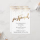 Si vous devez informer votre entourage d'une nouvelle date de mariage, ce modèle festif pourrait être exactement ce que vous cherchez ! Dans ce design, la police de caractères manuscrite a été utilisée pour créer un graphique qui indique "reporté" en gros caractères gras ; l'image a été rehaussée d'un effet doré métallisé. Le haut des deux côtés a été accentué avec une image qui simule des confettis dorés assortis qui semblent tomber d'en haut. Utilisez les champs du modèle pour ajouter vos informations personnelles et rendre ce design unique et moderne vôtre. L'arrière-plan peut être changé en n'importe quelle couleur de votre choix. // 100 //