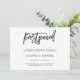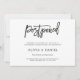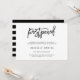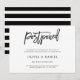 Carte d'annonce de mariage reporté moderne noir et blanc avec un motif à rayures au verso. Si la date de votre mariage a dû être modifiée, c'est un excellent moyen de prévenir vos invités.