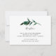 Conçue pour coordonner avec notre collection de mariage Couronne de palmier, cette élégante carte de réception botanique verte et blanche tropicale présente une seule feuille de palmier dans une aquarelle vert foncé surmontant les détails de votre réception de mariage, l'heure et l'adresse.