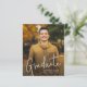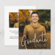 Une carte d'annonce de remise de diplôme avec 2 photos à petit budget avec une police manuscrite et une photo de portrait en pleine page sur le devant avec le nom et les détails de la remise de diplôme. Le verso comporte une deuxième photo avec des détails supplémentaires. Cliquez sur le bouton modifier pour personnaliser ce design.