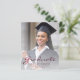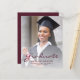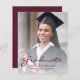 Carte moderne d'annonce de remise de diplôme avec une photo verticale personnalisée. Le mot « Diplômé » apparaît en écriture bordeaux, avec le nom du diplômé, l'école et l'année de remise de diplôme en dessous en police sans empattement. Remplacez facilement l'image exemple par la photo de votre propre diplômé. Un écran dégradé blanc aide à faire ressortir le texte. Le verso est en bordeaux uni. Idéal pour la remise de diplôme d'études secondaires ou supérieures.