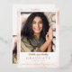 La carte d'annonce de remise de diplôme en feuille de marbre or rose tendance est parfaite pour le diplômé du lycée ou de l'université qui recherche une carte élégante mais tendance et simple. Comprend un espace pour 2 photos, une sur le devant et une sur le dos. Personnalisez le texte pour qu'il corresponde à vos préférences. L'exemple présenté est avec feuille d'or rose. Choisissez l'argent ou l'or pour varier vos métaux !