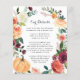 La conception présente une couronne florale élégante à l'aquarelle dans des nuances de rouge bordeaux, orange, blanc ivoire, rose blush et plus encore sur la verdure botanique d'automne. Une belle citrouille automnale fait partie du modèle avec des chrysanthèmes, des dahlias, des roses, etc. Vous pouvez supprimer le texte de démonstration et ajouter le vôtre. Vous pouvez également ajouter une carte ou tout ce que vous voulez à l'avant ou à l'arrière -- c'est entièrement personnalisable.