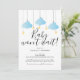 Carte d'annulation de baby shower, sprinkle bébé garçon bleu. Quoi qu'il arrive, bébé ne peut pas attendre même si la fête peut. Tenir tout le monde au courant. Conçu par Thisisnotme©