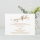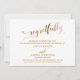 La distinction de cette suite est due à la police de caractères moderne embellie de cœurs et à un effet de feuille d'or faux utilisé pour les phrases d'accentuation. Si vous vous trouvez dans la position de devoir informer vos invités de mariage que vous annulez votre mariage, voici une option élégante. Dans ce modèle, la jolie police de caractères a été utilisée pour créer un graphique représentant simplement le mot "regretfully". Utilisez les champs de modèle pour ajouter vos informations personnelles et rendre ce design moderne unique vôtre. Le fond blanc peut être changé en n'importe quelle couleur que vous préférez. Le dos a été recouvert d'un motif doré répétitif qui permet à la couleur de votre choix de transparaître entre les lignes. N'hésitez pas à nous contacter pour toute demande spéciale ou pour une aide à la personnalisation. // 80 //