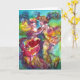 Invitation artistique colorée, élégante et vibrante.Danseurs de carnaval romantique : Artistique, fantaisie, figurines de danse expressive, belle femme blonde aux costumes étincelants plumés danse avec un jeune arlequin.Aquarelle peinture en rose vif, fuchsia, vert, rouge, bleu, jaune couleurs, éclat d'or inspiré de Comedy of Art (Commedia dell'arte ) et Carnaval de Venise. C'est aussi un beau cadeau pour noël, vacances, occasions spéciales, fêtes d'anniversaire, bal de la veille mascarade de Nouvel an, Saint Valentin.