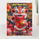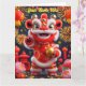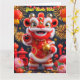 Une carte de vœux amusante et vibrante présentant une danse du lion mignonne. Avec ses lanternes colorées et ses feux d'artifice, elle offre un défi engageant pour toute la famille pendant la célébration du Nouvel An lunaire