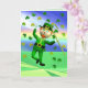 Mon lutin 3D dansant une gigue le jour de la Saint-Patrick avec des trèfles volant autour de lui.