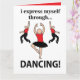 Dancing I Express Me Through Dancing Card design original par Nisha Prabhu. Libérez votre passion pour la danse avec notre carte "Dancing : I Express Me Through Dancing" ! Ce design dynamique capte l'essence du mouvement et de l'expression de soi, parfait pour tout danseur à coeur. Que ce soit pour une occasion spéciale ou simplement pour inspirer quelqu'un qui aime chanter, cette carte en dit long sans dire un mot. Son graphisme accrocheur et son message sincère en font un choix idéal pour les anniversaires, les récitals ou un simple "juste parce que". Célébrez le rythme de la vie et partagez la joie de la danse avec cette carte éblouissante, parce que chaque étape raconte une histoire!