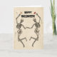 Envoyer des salutations éffrayantes et gothiques cet Halloween avec une carte qui capture le plaisir effrayant et le glamour vintage! Le design comprend des squelettes dansants éffrayants élevant des verres de vin sous un "Happy Halloween !" Typographie. Personnalisez la carte avec votre propre message, polices et couleurs pour la rendre unique. Parfait pour les salutations d'Halloween, les invitations de fêtes ou les voeux éffrayants, cette carte apporte une touche d'élégance hantée à chaque destinataire. Pour une personnalisation supplémentaire ou pour transférer cette conception à d'autres produits, n'hésitez pas à nous contacter avant de passer votre commande. Merci pour visiter notre magasin! Copyright Soar In Style Designs LLC.