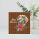 Aquarelle illustration de chien Dachshund brun avec poinsettia pulvérisateur floral sur arrière - plan festif vert et rouge plaid. Le texte "Joyeux Noël" peut être modifié pour Personnaliser avec le nom ou un autre message de fête