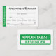 COLOR COORDINATED Appointment Reminder printed large on the reverse side.