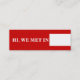 Restez en contact avec des voyageurs, des hôtels, des sociétés de visite et de nouveaux amis que vous rencontrez tout en voyageant localement ou à l'étranger avec ces cartes pratiques qui indiquent, salut, nous nous réunissions dans, suivi d'un espace pour que vous notiez le pays ou la ville vous avez visitée. Le dos a vos détails de contact. Pas plus qui tâtent avec des morceaux de papier, maintenant vous pouvez échanger des conditions particulières personnelles rapidement et s'assurer que vos cartes se rappellent où vous vous êtes réunis. Amusement, frais et impressionnant
