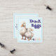 Petites cartes téléphoniques carrés avec canards pour annoncer des oeufs frais ou d'autres produits agricoles. L'exemple de libellé est "Oeufs de canard" sur le devant. Ajoutez du texte à l'arrière. Cartes bleu clair avec deux canards blancs sur le devant à côté de quatre oeufs.