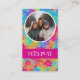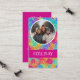 Une carte de visite avec une photo et des informations sur une mère et ses enfants avec un arrière - plan floral coloré et un dos rose. Créez une carte frappante à distribuer aux dates de jeu, à l'école et aux garderies.