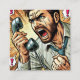 Un gros plan d'un homme nerveux qui s'accroche comme une bande dessinée en hurlant dans un téléphone, transpirant sur son front. Les caractéristiques exagérées et les lignes audacieuses amplifient son urgence, ce qui en fait une image frappante pour un design de carte d'appel.