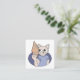 A playful cartoon cat, wearing a blue t-shirt, displays a croissant with sharp outlines and soft pastel tones. A quirky and friendly vibe for children and lovers of pets and croissants.